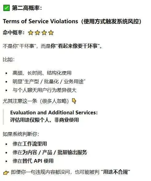 原来Claude不许高频、长时间、结构化使用;不许生产型/批量化/业务用途;不许商业用途。这些我都犯了……并且这些我还都不知道……