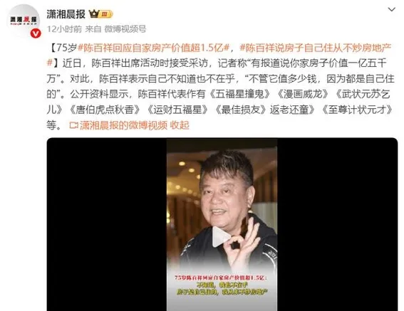 01陈百祥,活明白了。就在前几天,这个75岁的香港老牌笑星,轻描淡写地回应了自家那估值过亿的豪宅。记者追问具体数字,他摆摆手,笑得眼睛眯成一条缝:“不管它值多少钱,因为都是自己住的。”一句话,九个字。却像一颗小小的石子,扔进了如今这个唯数字论、唯身价论的喧嚣名利场。激起的,何止是涟漪?要知道,那可是香港的超级豪宅区,市场估价动辄以“亿”为单位疯涨。别人恨不得把资产数字刻在脑门上,他倒好,一句“自己住的”,就把所有窥探、比较和算计,轻轻挡在了门外。有意思的是,当年在电影里挤眉弄眼、装傻充愣的“祝枝山”和“多隆”,谁能想到,现实中的他,竟活成了最通透的那一个?02说起陈百祥,我们的记忆总被拉回那个港片黄金年代。他是周星驰身边最称职的“绿叶”,是《唐伯虎点秋香》里贱兮兮的祝枝山,是《鹿鼎记》里怂包又忠心得多隆。片酬可能不及主角零头,但他一张脸,就是票房保证,是几代人共同的欢乐记忆。可谁能想到,这个在银幕上看似“胡闹”的人,人生剧本却远比电影跌宕?