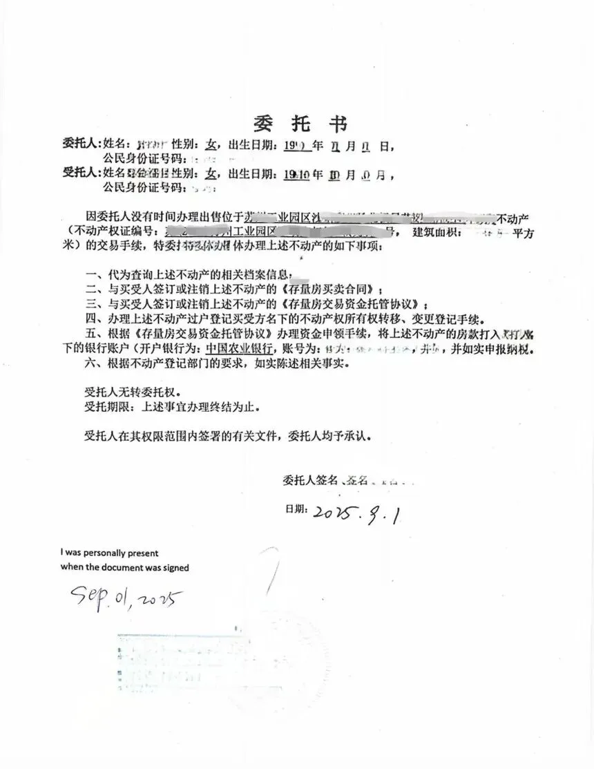文件认证完成后,我们通过加急快递寄往苏州,由张先生的受托人直接持该认证委托书前往房管局、税务局以及银行,顺利完成了房产出售、资金划转及纳税申报等手续。整个过程高效便捷,避免了张先生长途奔波回国的麻烦。