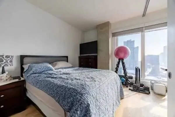 市中心著名项目Louise Boheme,高层25楼,直通绿线地铁Place-des-arts,906平方尺使用面积,2室1厅1卫,中央空调,价格包含5大电器,室内车位,locker,绝美景观。配套室内图书馆,露台花园,泳池,桑拿,健身房,7天24小时门卫。艺术广场生活触手可及,链接繁华与便捷,步行即达麦吉尔大学,UQAM,室内通道直达唐人街,尽享都市精华!