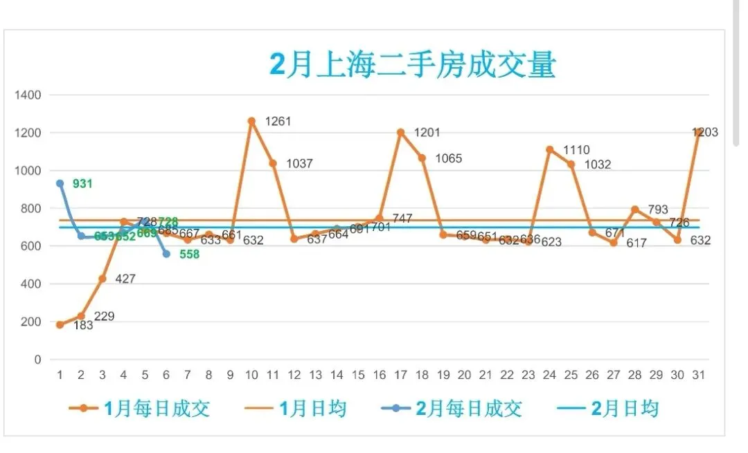 🏡2月,上海二手房成交量累计4191套,日均成交698套,较上个月日均减少38套(降幅5.16%)。