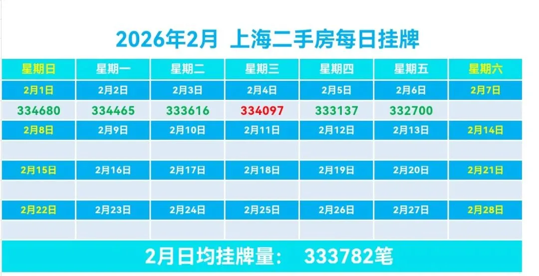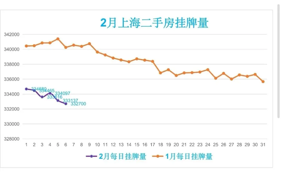 🏠昨日(2月6日,周五)挂牌332700笔,较前一日减少437笔,日均挂牌333782笔,约33.38万笔,挂牌与实际成交比478:1,去化周期约15.9个月。