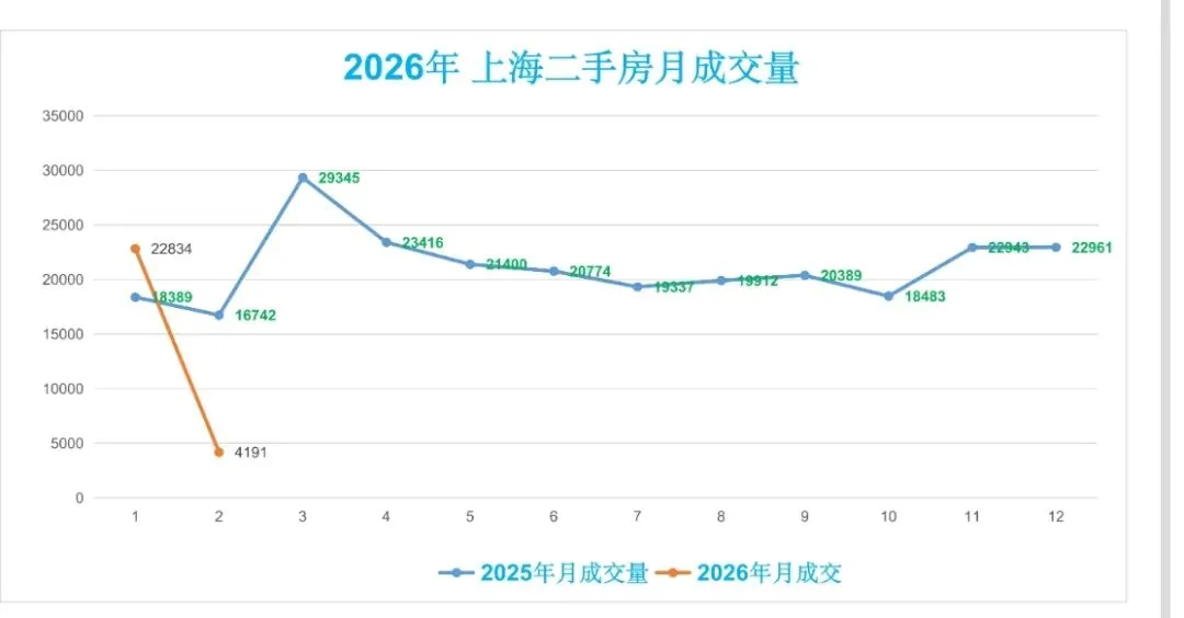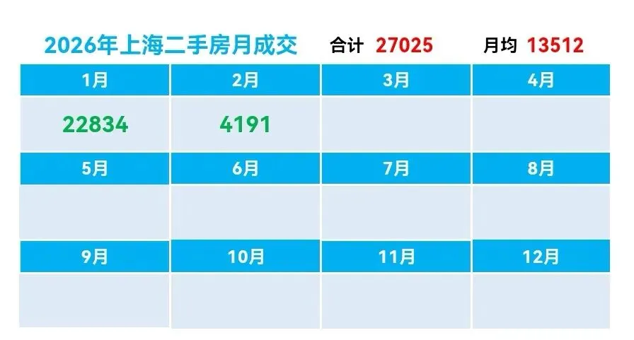 ♻️截止2026年2月6日,2025年上海二手房成交量合计254091套,月均21174套。