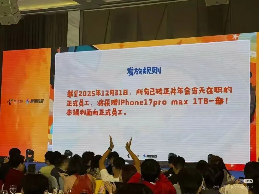 公司给所有正式员工发了一部iPhone 17 Pro Max 1TB(看现场图手机堆积成山)
