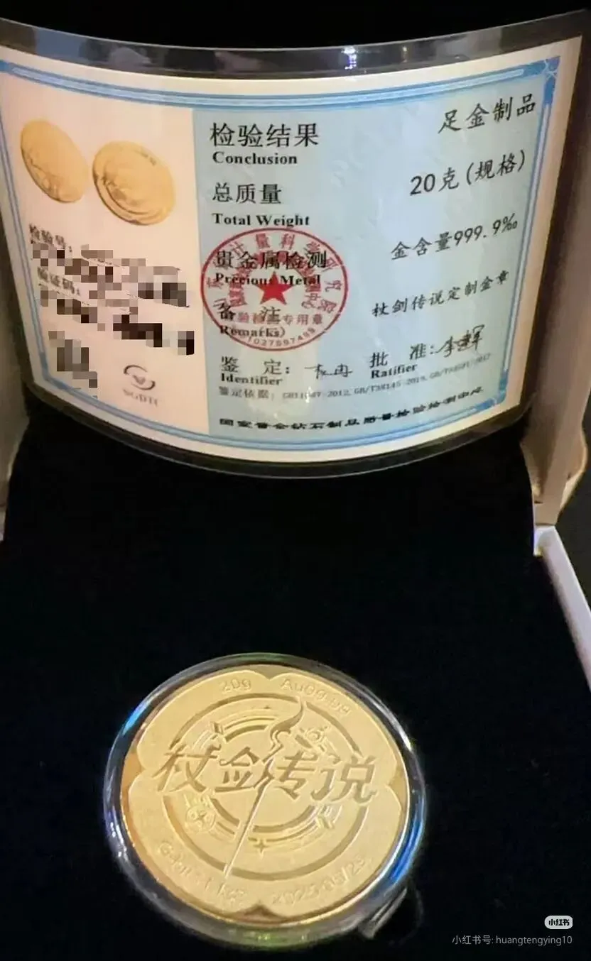 且《杖剑传说》项目组每人获赠了20克的定制金币