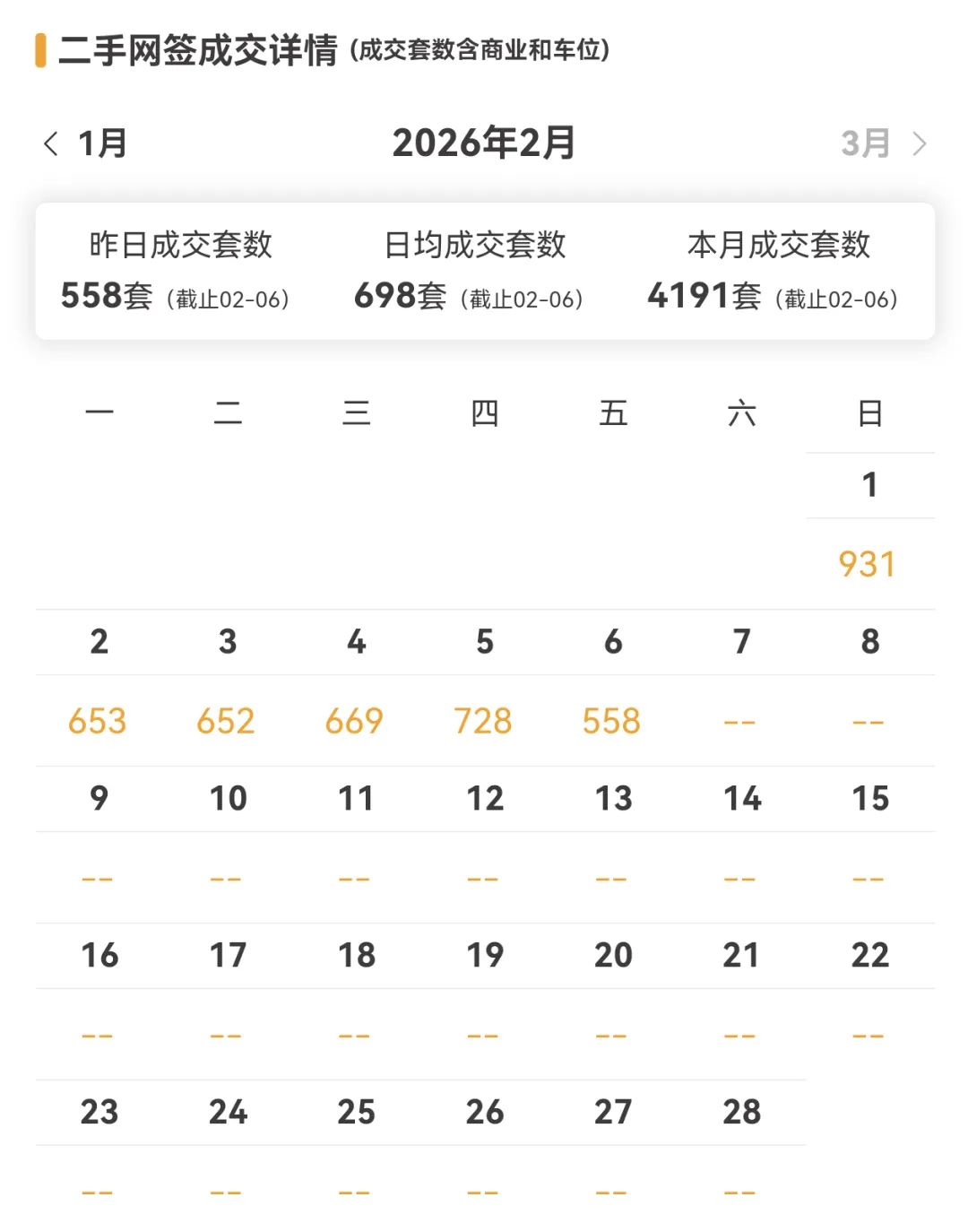 上海二手房最新成交量:昨日(2月6日)网签558套(含住宅、商业、车位等)。