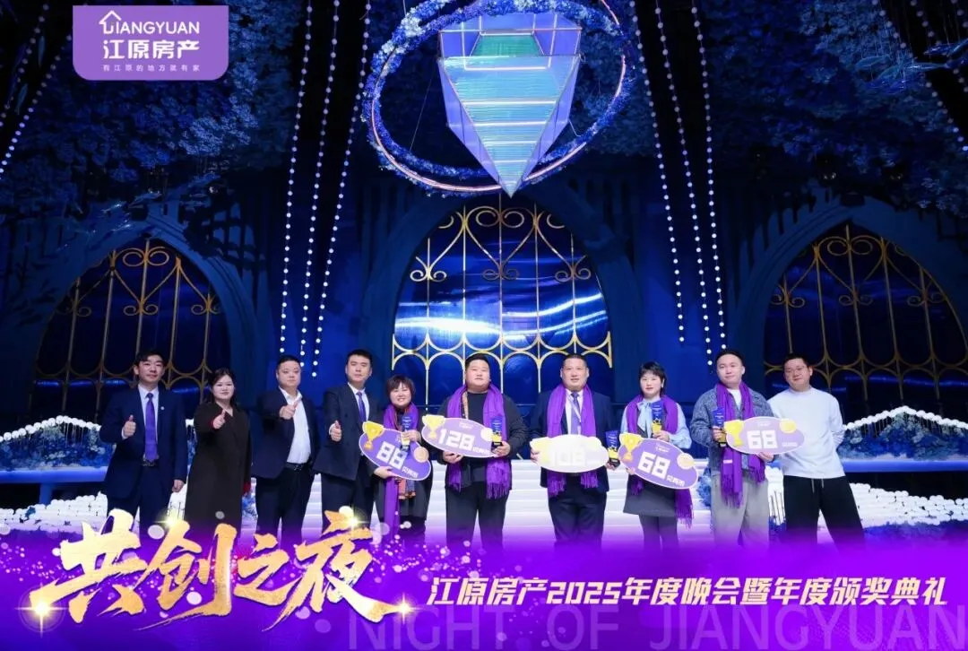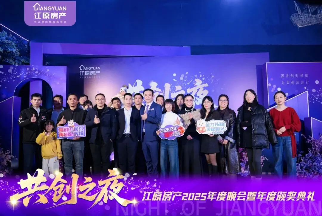 2026年2月4日,江原房产以“共创之夜”为主题,盛大开启了2025年度晚会暨年度颁奖典礼的华丽篇章。