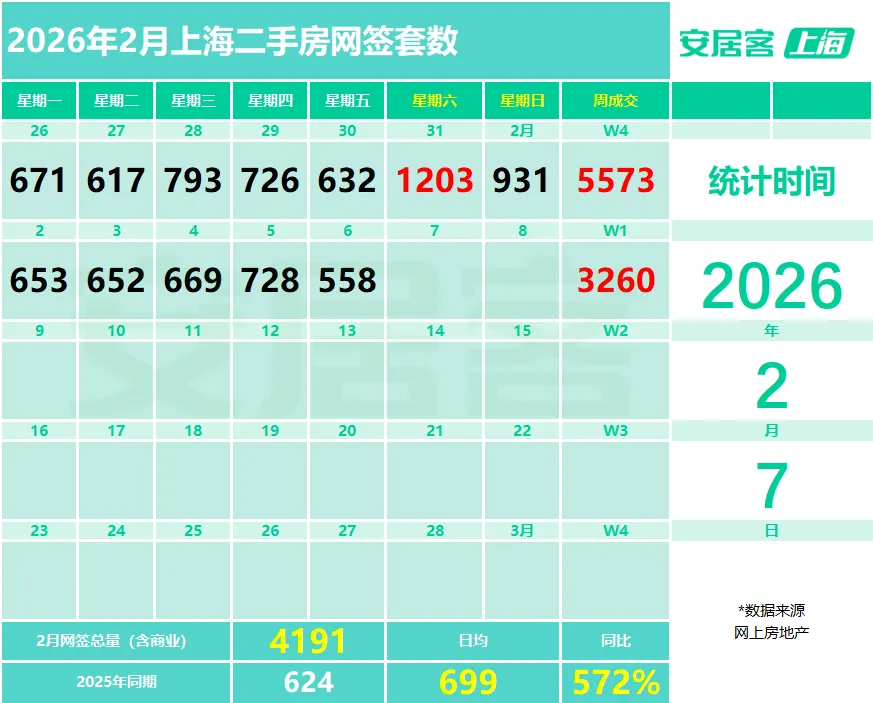 新房540套,二手房558套!2月6日上海网签数据出炉!