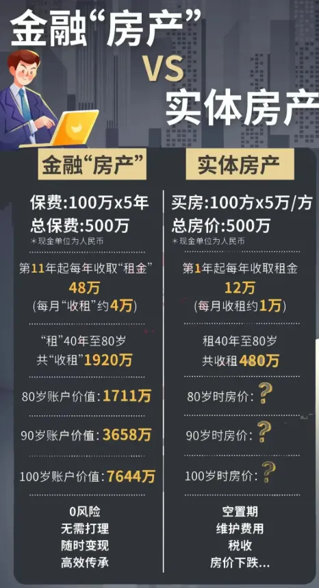 金融房产是一个比喻性概念,主要指通过金融合约(如香港储蓄分红险、增额终身寿险)来模拟房产的“收租”功能,本质是金融资产。