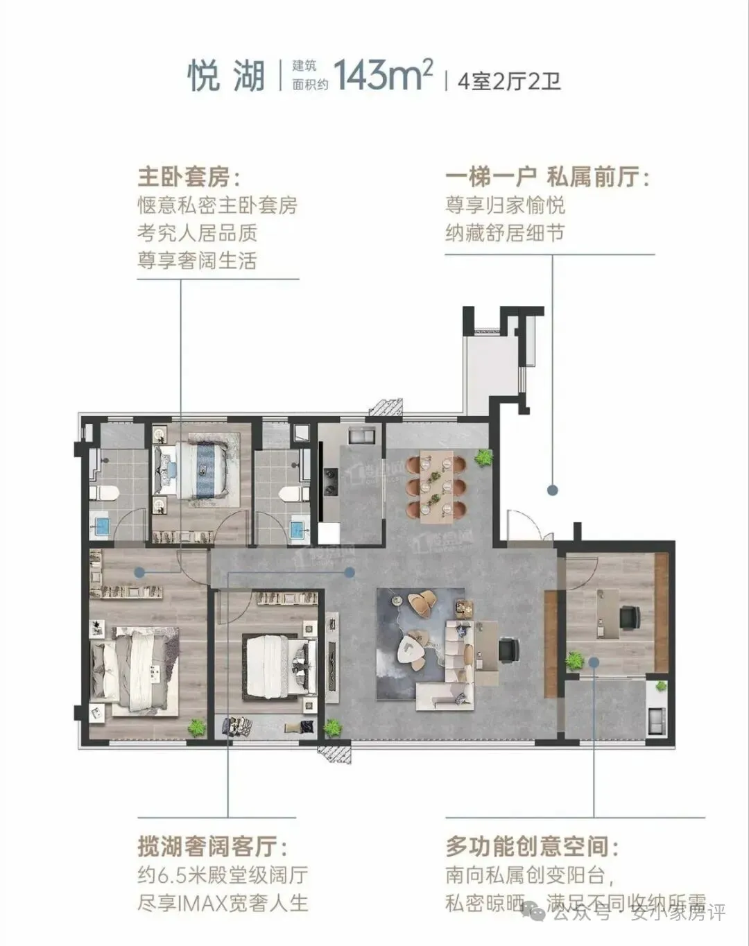 A区143平4+1房,装标很高。