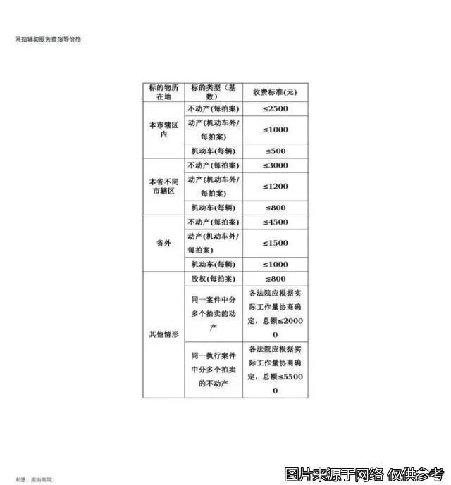 据了解,此项收费依据源自湖南省高级人民法院于2020年制定的《关于人民法院网络司法拍卖辅助工作的管理办法(试行)》。该文件明确规定了由社会机构承担部分辅助工作,并允许将必要支出由被执行人承担,同时附带了详细的“网拍辅助服务费指导价格”,对不同类型财产及地域范围设定了最高收费标准——如省内不动产最高3000元每案。