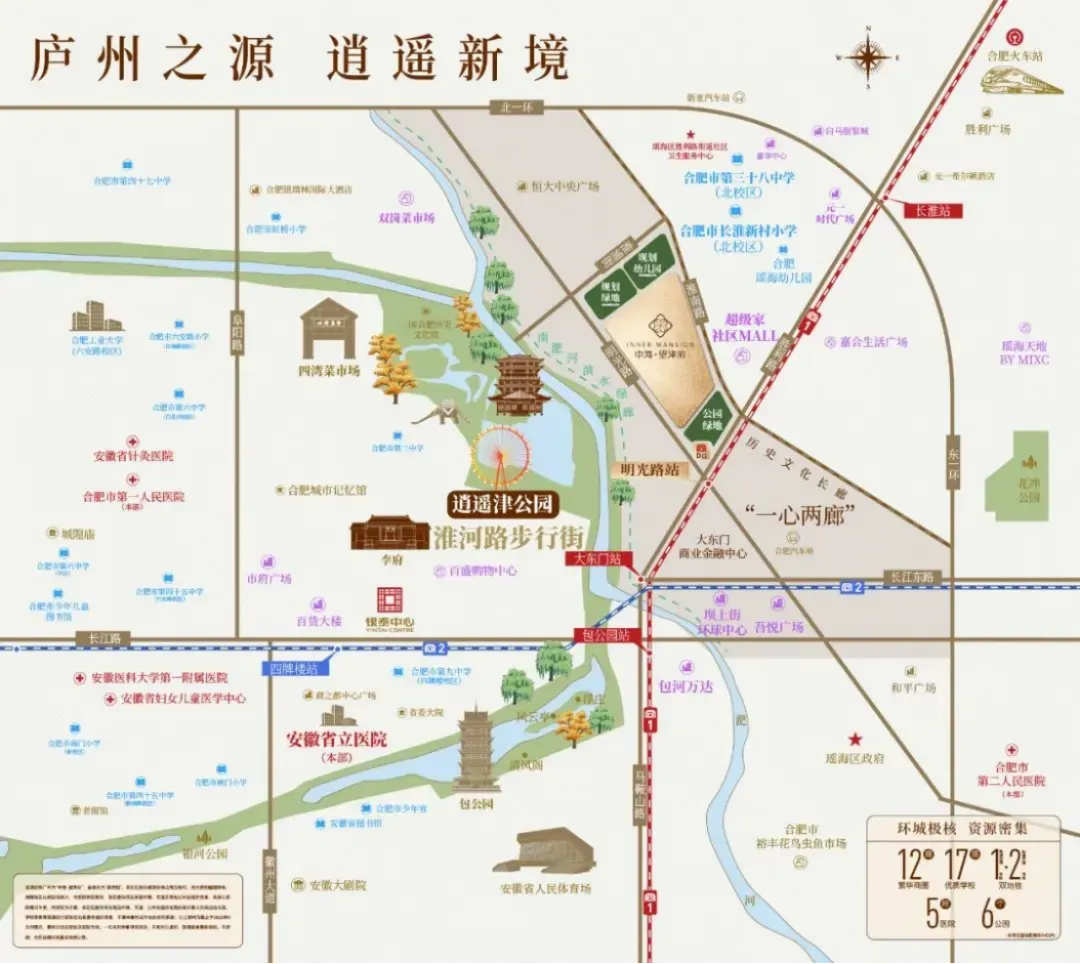 生态资源上,约600 米处是 31 万方的逍遥津公园,项目旁还规划有 3750㎡公园,周边绿地也在规划中,实现 “推窗见绿、出门入园”。