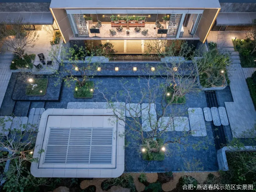 社区内部,打造巡游式立体水院会所,植被、水系、山石营造“步移景异” 的森境;合肥海派艺术会所设健身、瑜伽、儿童游乐等空间,满足全龄需求。