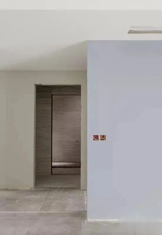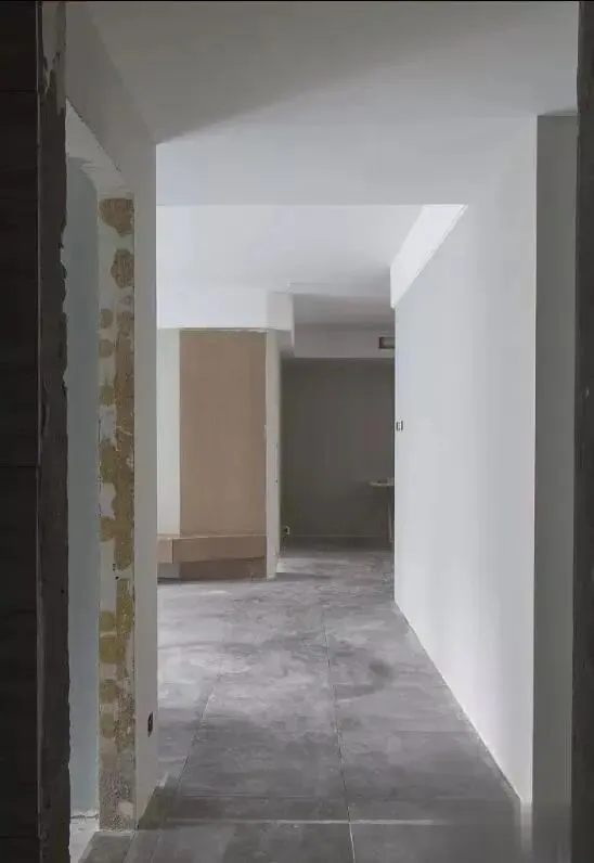 ▲施工时候的样子,进门衣柜都做了镶嵌处理,视觉要好看多了。