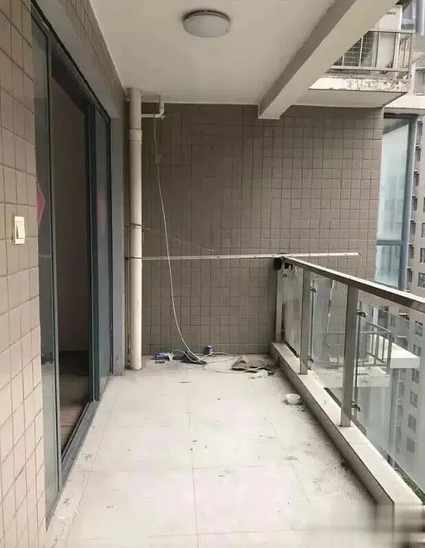▲未改造之前的阳台空间。以前就是一个半封闭露台,还是原来的外墙瓷砖,几乎全部浪费掉了。