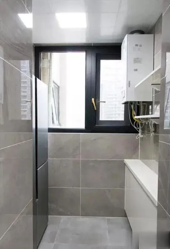 ▲这是把入户花园的一部分给了厨房,刚好放置冰箱以及壁挂炉,下方矮柜满足杂物收纳。