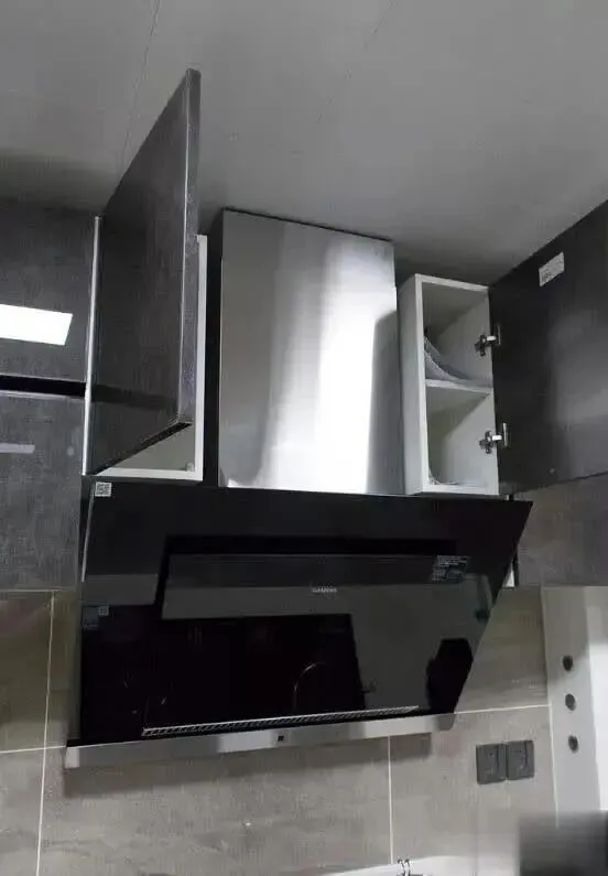 ▲烟机做了包裹隐藏,两边隔板可以满足收纳,颜值和功能都有了。