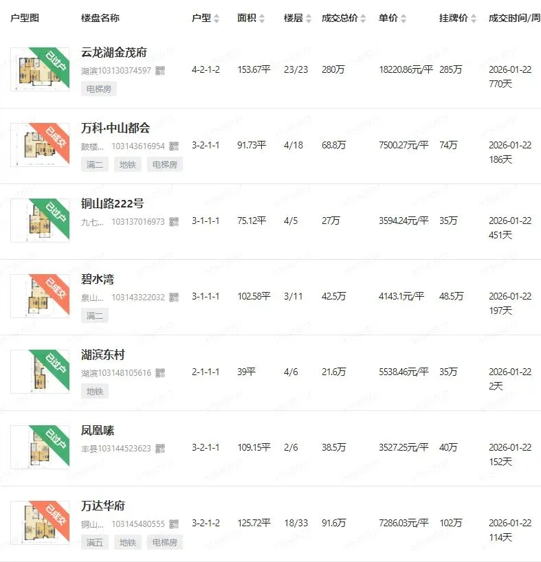 1.小编每日开始更新丨全徐州二手房真实的成交价。