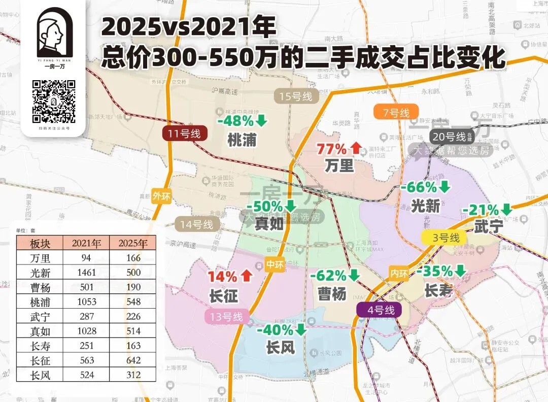 不同于长征、长风和曹杨这样有优质教育资源的板块,也没有武宁、长寿的内环内+密集轨交的物理优势,