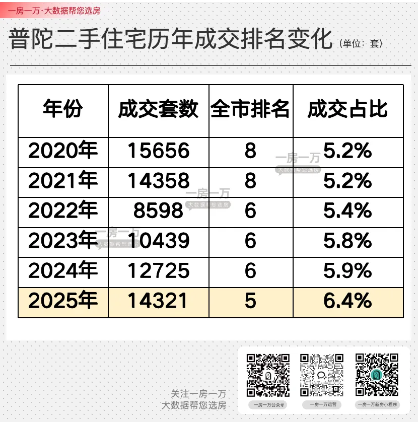 截至2025年,普陀以1.43万套位居全市第5名,前面除了浦东、闵行、宝山那三位外,仅次于松江。