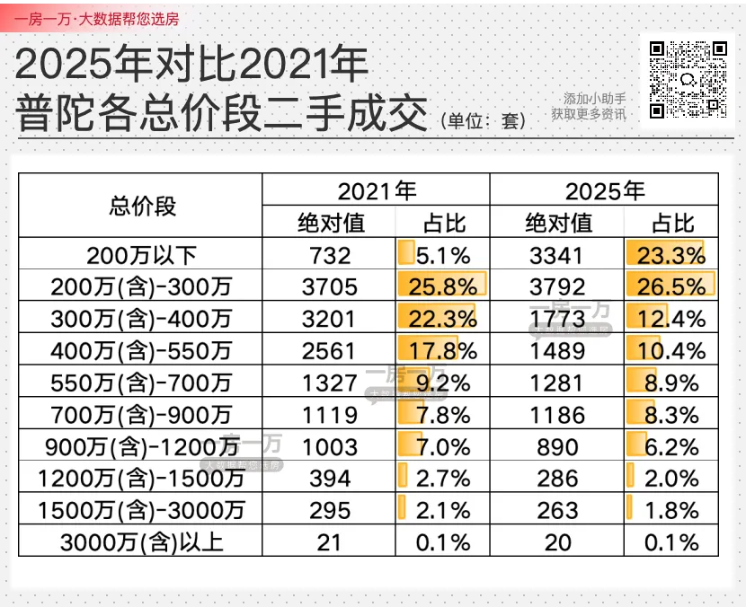 最明显的是200万以下的成交,4年翻了4倍,占比达到23.3%。