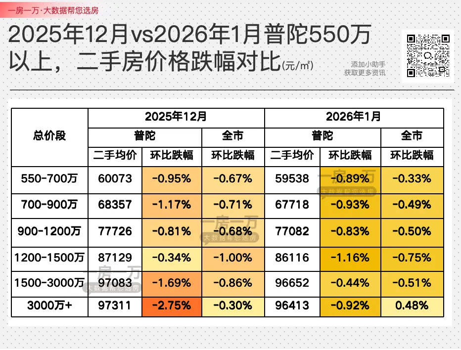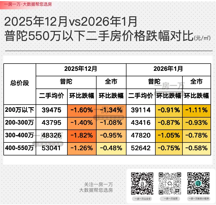 从1月开始,普陀的二手房价环比跌幅,整体上是在明显收窄的。