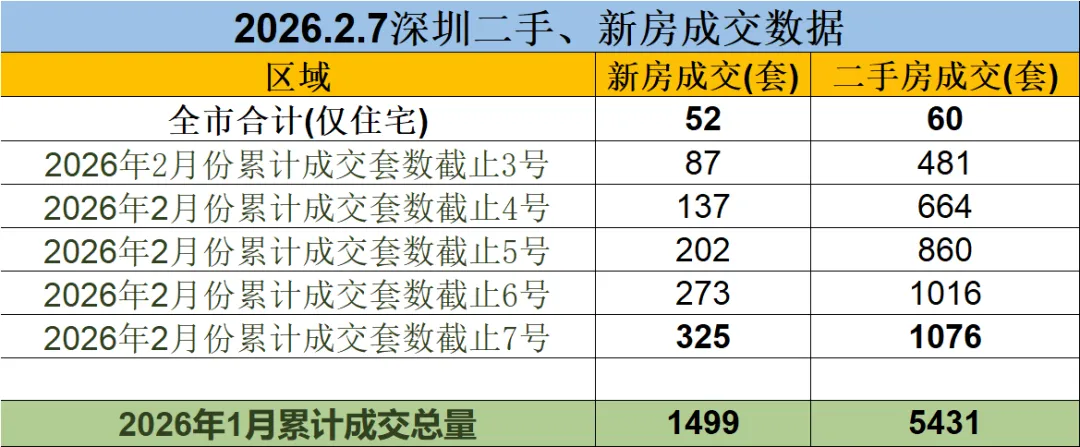>2026年2月7号深圳二手房、新房成交数据