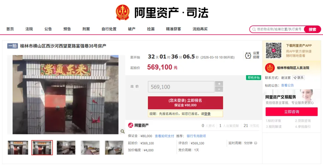 3月10日至3月11日,榆林市榆阳区法院将在淘宝网公开变卖榆林市横山区西沙河西望夏路富强巷35号房产。