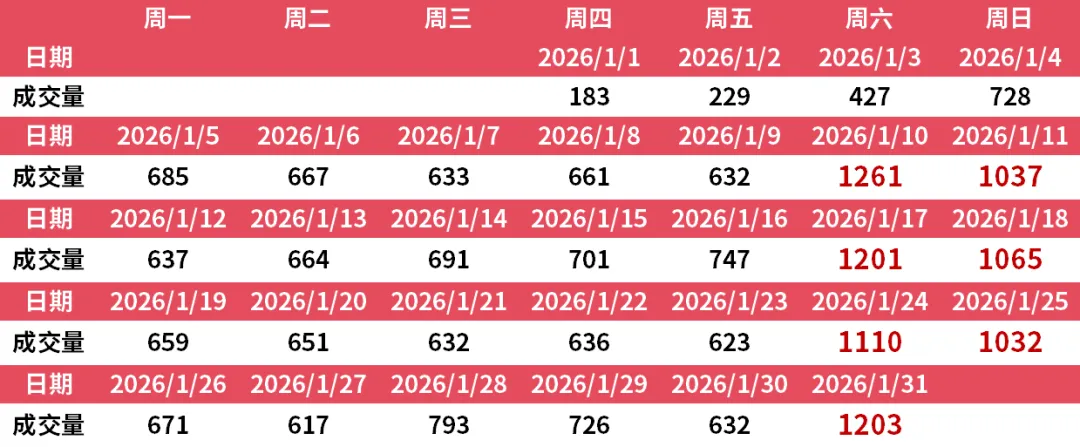 从成交节奏来看,1月市场热度贯穿全月。
