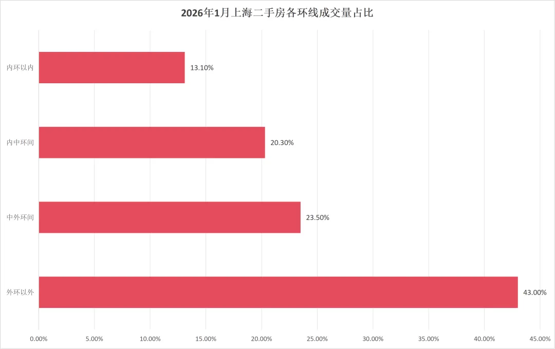 1月外环外房源成交占比达43.0%,环比提升3.1%,同比增长10.7%,郊区和新兴区域刚需成交活力十足。这类区域凭借价格优势,成为预算有限的年轻购房者“上车”首选。