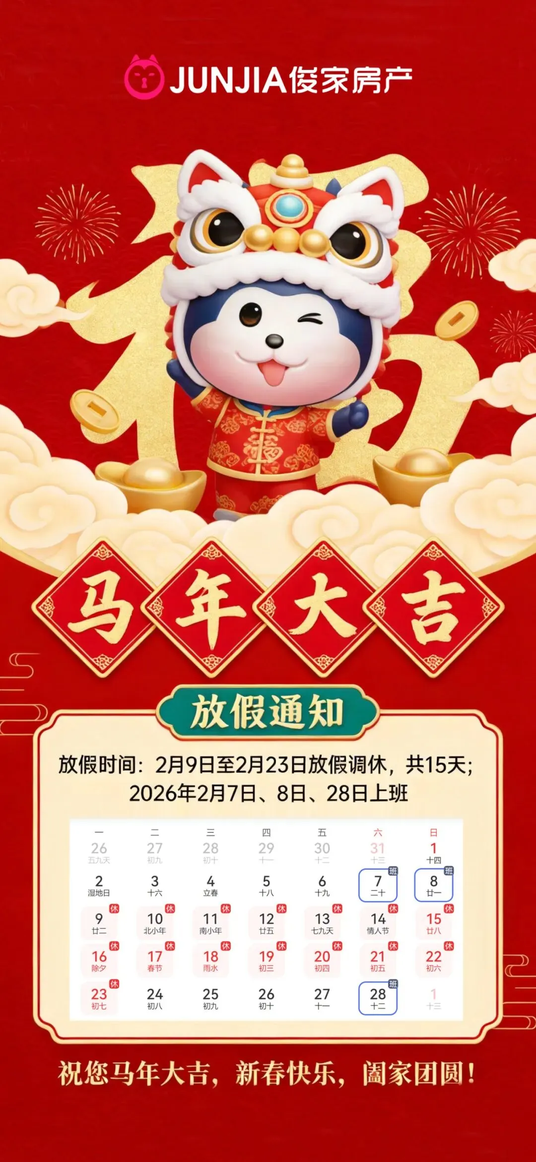 >俊家房产2026年春节放假通知