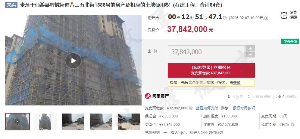 一、拍卖标的物:坐落于仙游县鲤城街道八二五北街1888号3#楼203室、301室、1103室,6#楼201室、301室、401室、501室、601室、701室、801室、901室、1001室,7#楼102室、103室、104室、202室、203、204室、302室、303室、304室、402室、403室、404室、502室、503室、504室、602室、603室、604室、702室、703室、704室、802室、803室、804室,8#楼101室、102室、103室、104室、201室、202室、203室、204室、302室、303室、402室、403室、802室,9#楼102室、103室、104室、202室、203室、204室、303室、403室,10#102、103室、104室、105室、201室、202室、203室、204室、205室、206室、302室、303室、304室、305室、306室、401室、402室、403室、404室、405室、406室、501室、502室、503室、504室、505室、506室的房产及相应的土地使用权(在建工程,合计84套):