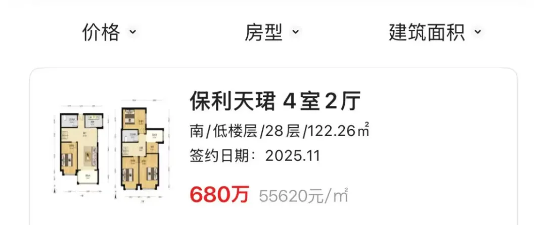 最近看到荔湾保利天珺成交了一套二手房,单价约5.5万,总价680万。
