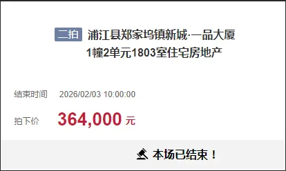 浦江县郑家坞镇新城·一品大厦1幢2单元1803室住宅房地产二拍成功拍卖!