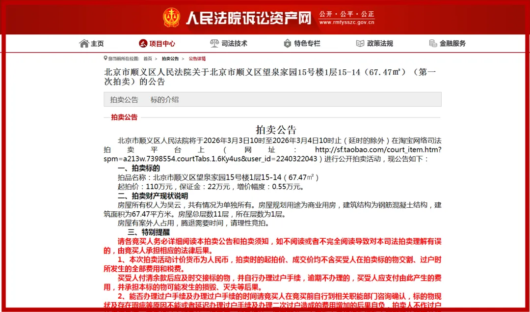 北青报记者了解到,负责执行的人民法院、网络服务提供者、承担拍卖辅助工作的社会机构或组织的工作人员及其近亲属不得竞拍,也不得委托他人竞拍。除上述人员外,凡具备完全民事行为能力的公民、法人和其他组织均可参加竞拍。竞拍人需到相关部门详细了解拍卖物的具体情况、过户相关政策以及所在地限购政策,期间产生的风险需自行承担。
