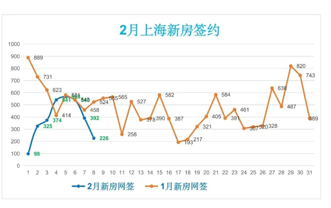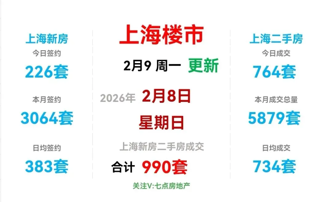 昨日(2月8日,周日),上海新房和上海二手房成交量合计990套。