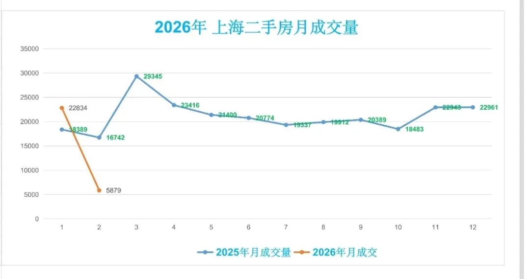 ♻️截止2026年2月8日,2025年上海二手房成交量合计254091套,月均21174套。