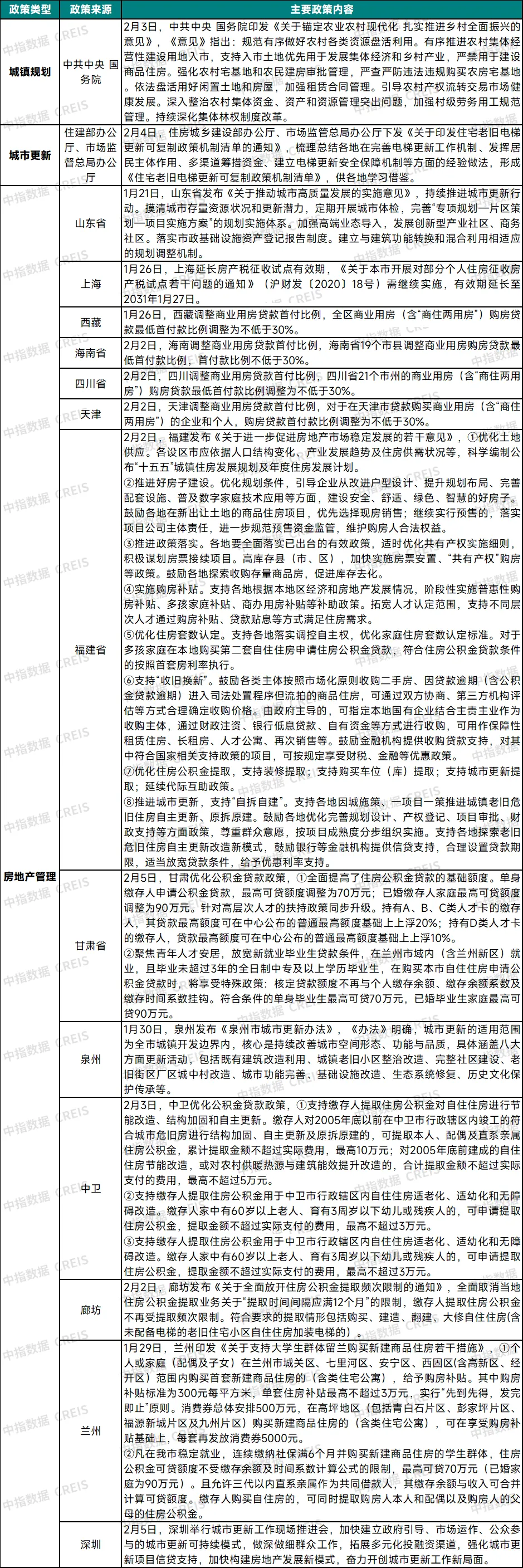 表:2月2日至2月8日房地产市场重点政策及事件汇总