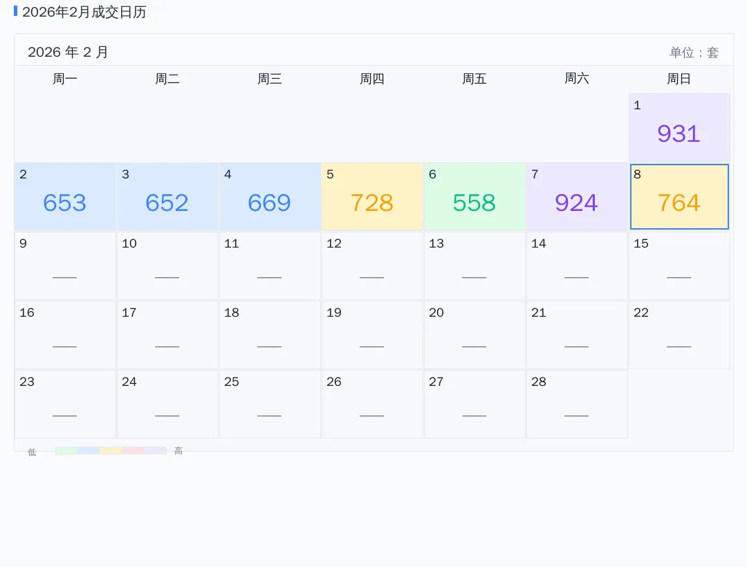 2026年02月成交日历