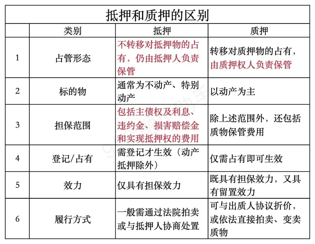 抵押和质押都是一种担保债务履行的形式,它们最核心的区别在于:是否转移担保财产的占有。