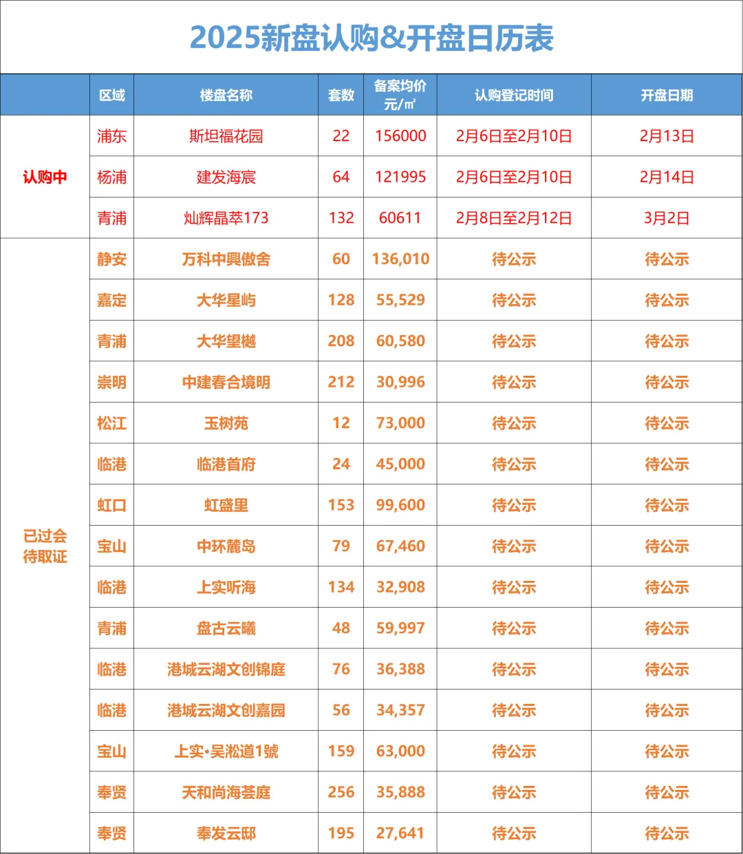 上海新房认购&开盘日历