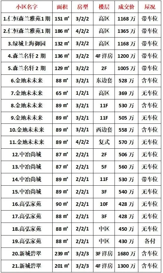2026年1月森兰社区二手房成交解析!
