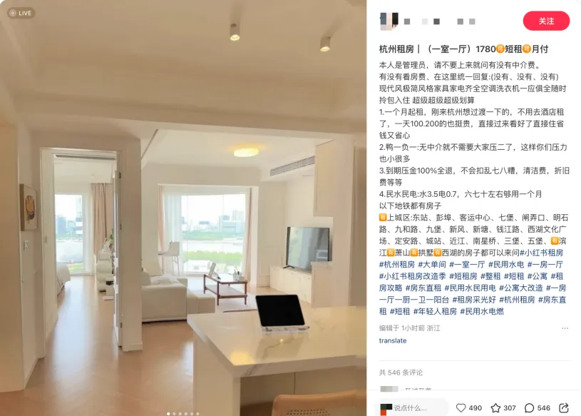 1.标题清晰聚焦:直击租客核心诉求标题简洁明了地涵盖关键信息。对于在杭州找房的租客,尤其是短期过渡、资金不宽裕人群,这些信息精准匹配需求,不用点开详情,就能快速判断是否符合自身条件,高效筛选目标受众,在租房信息洪流中瞬间抓住注意力。