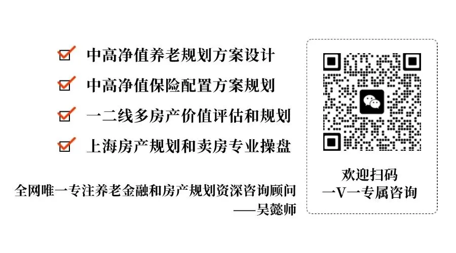 如果你也想为自己做一份养老和房产规划,欢迎扫码链接吴老师,我们会一对一定制专属于你的资产规划方案。