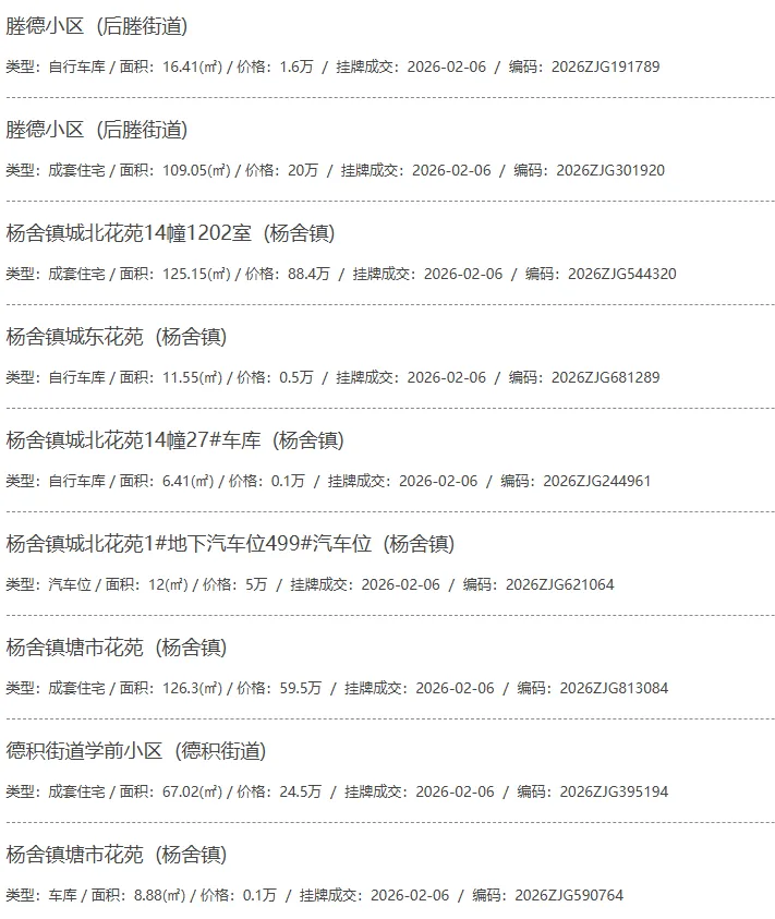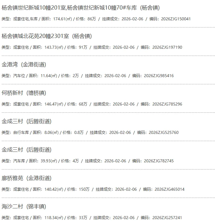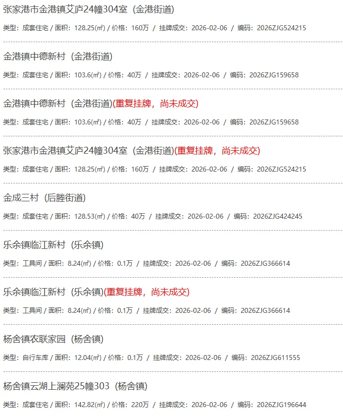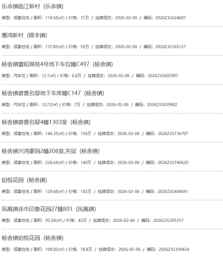 根据张家港房产网(www.zjgzf.cn)整理,(2026-02-06至2026-02-06)总共49套二手房网签挂牌成交(含自行车库及汽车库),数据根据住建局官方网签平台整理,并已同步至各对应小区的成交明细,特别提醒:此处数据及各小区成交数据中凡标注(来自网签挂牌)的,均是根据政府网签挂牌系统整理,价格可能不准,请谨慎采信;并仅作为您买房卖房的参考而非决定依据。以下为数据明细: