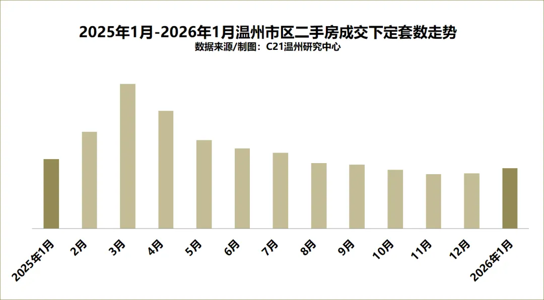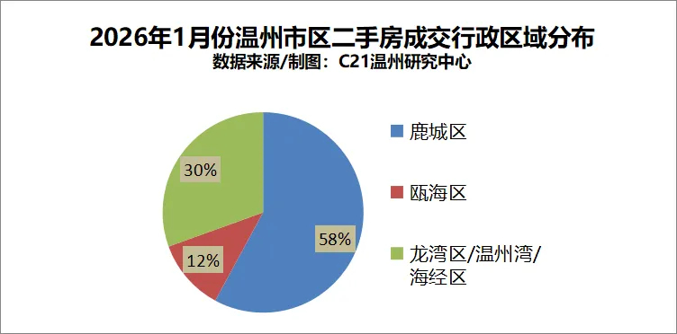 来自21世纪不动产温州区域成交数据显示:2026年1月,温州市区(仅统计鹿城区、瓯海区、龙湾区/温州湾/海经区)二手房成交量环比上升9.16%。从温州市区各行政/功能区二手房成交套数来看,本月除鹿城区成交明显上升外,其他行政区成交基本持平。