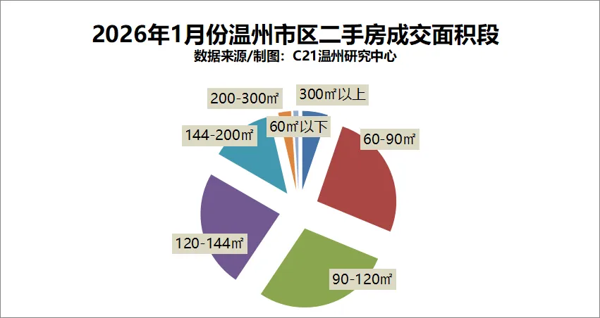1月,市区二手房(住宅)成交热门面积段排名前三分别是90-120㎡,120-144㎡,以及60-90㎡房源。