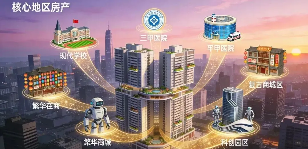 核心区域的房产,相当于手握了优质的教育、医疗、商业、产业资源,其价值的稳定性自然远超其他区域。