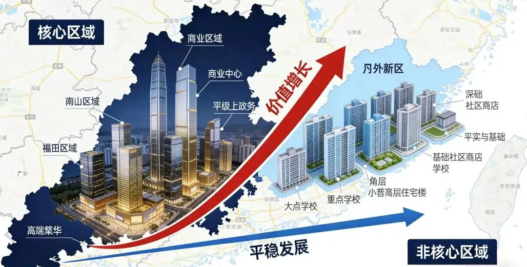 ,远郊片区则要看产业和配套落地。所谓核心城区,不是单指某个片区,而是那些产业密集、配套成熟、交通便利的区域——比如南山的科创核心、福田的金融中心、前海的深港合作区,这些地方的房产,因为土地稀缺、资源集聚,能穿越市场周期,保持保值增值的能力;而远郊的房产,如果没有产业落地、地铁开通等实际配套,需求就会相对疲软,去化压力也会更大。
