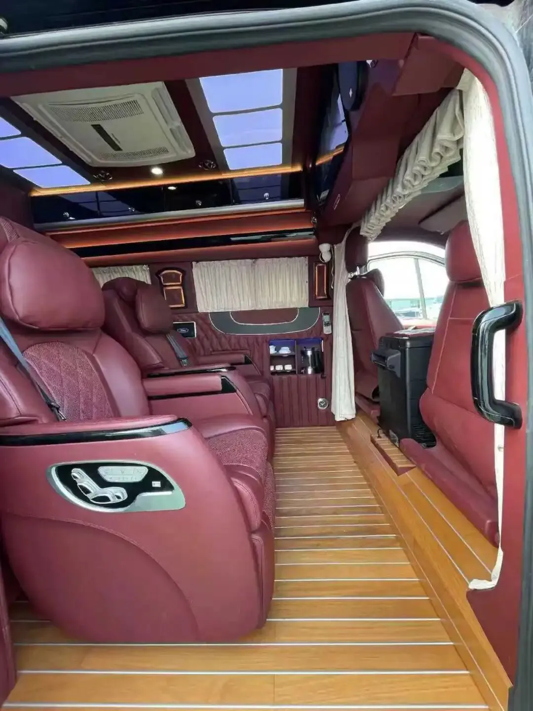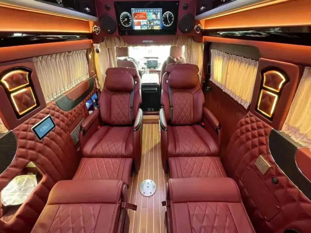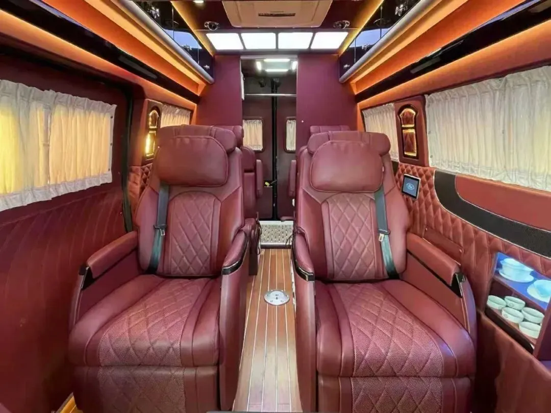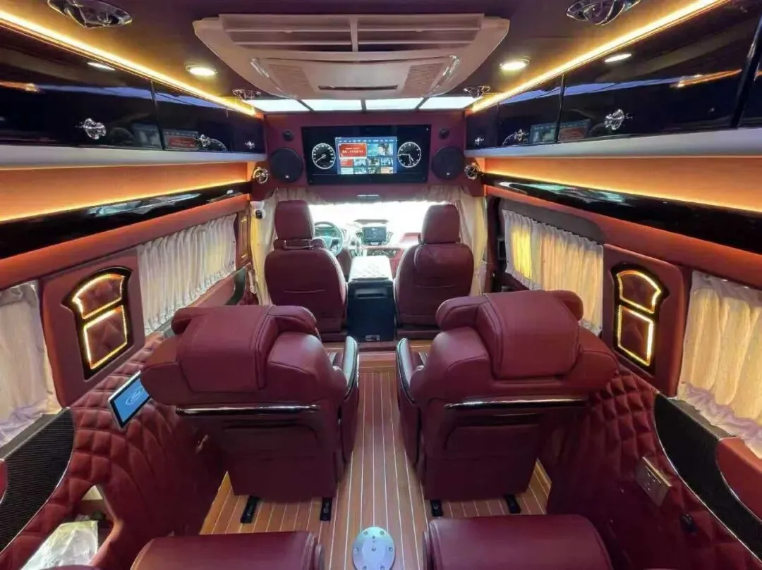 【其它配置】:多功能方向盘,电子手刹,一键启动,360影像,中控大联屏,主副驾座椅通风加热,后排豪华航空座椅(通风,加热,按摩),加装空气悬挂。整车豪华商务内饰,皮质软包,后厨卫布局,配置齐全,